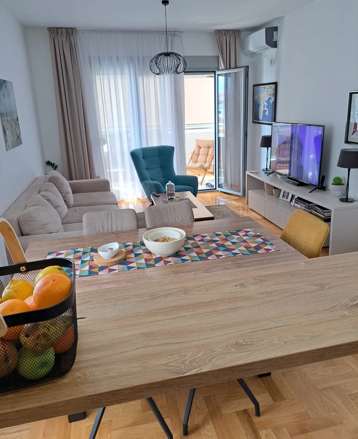 Luxuriös möblierte 3-Zimmer-Wohnung (84 m²) in attraktiver Lage in Rozino, nahe dem Okova-Gebäude, Budva, zu verkaufen.