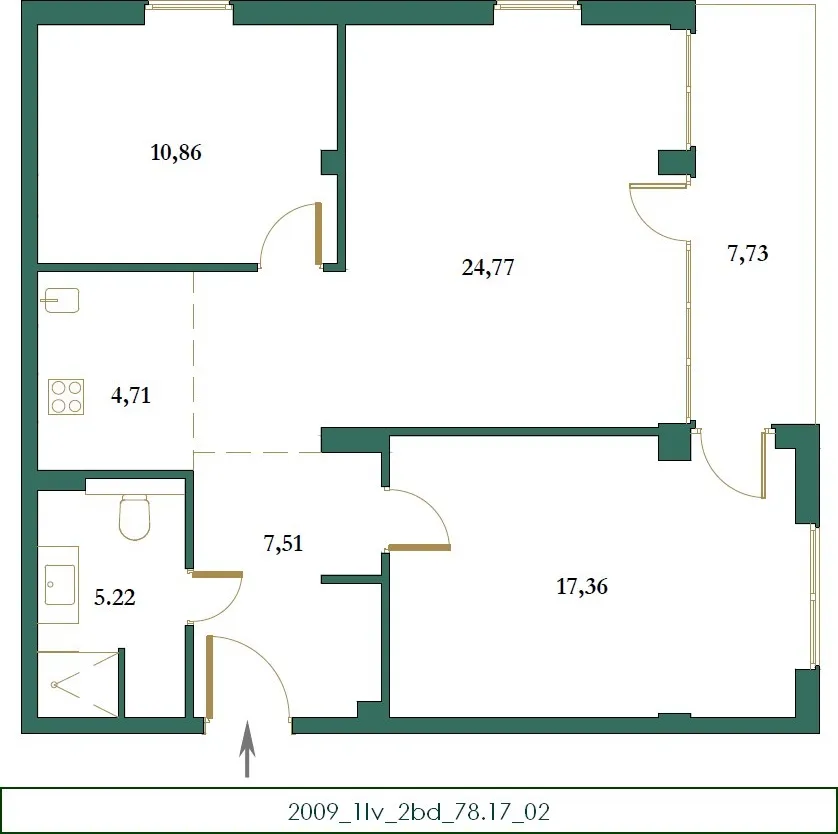 The apartment is located on the first floor and has an area of 78.17 m, a two-bedroom apartment by structure.