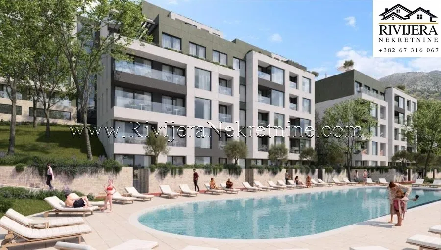 In einer modernen Wohnanlage in ruhiger Lage in Tivat, im Stadtteil Mrčevac, steht ein Studio-Apartment zum Verkauf.Die Wohnung hat eine Fläche von 27 m².
