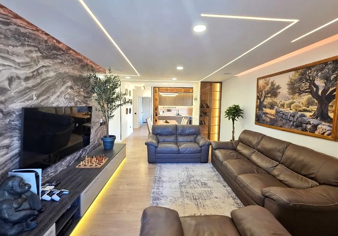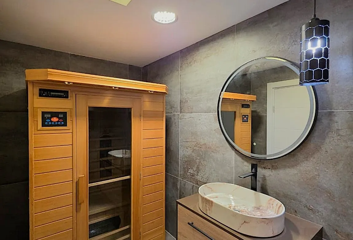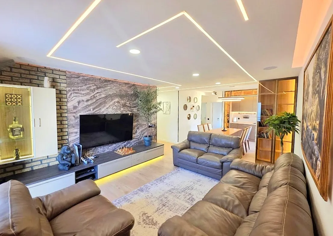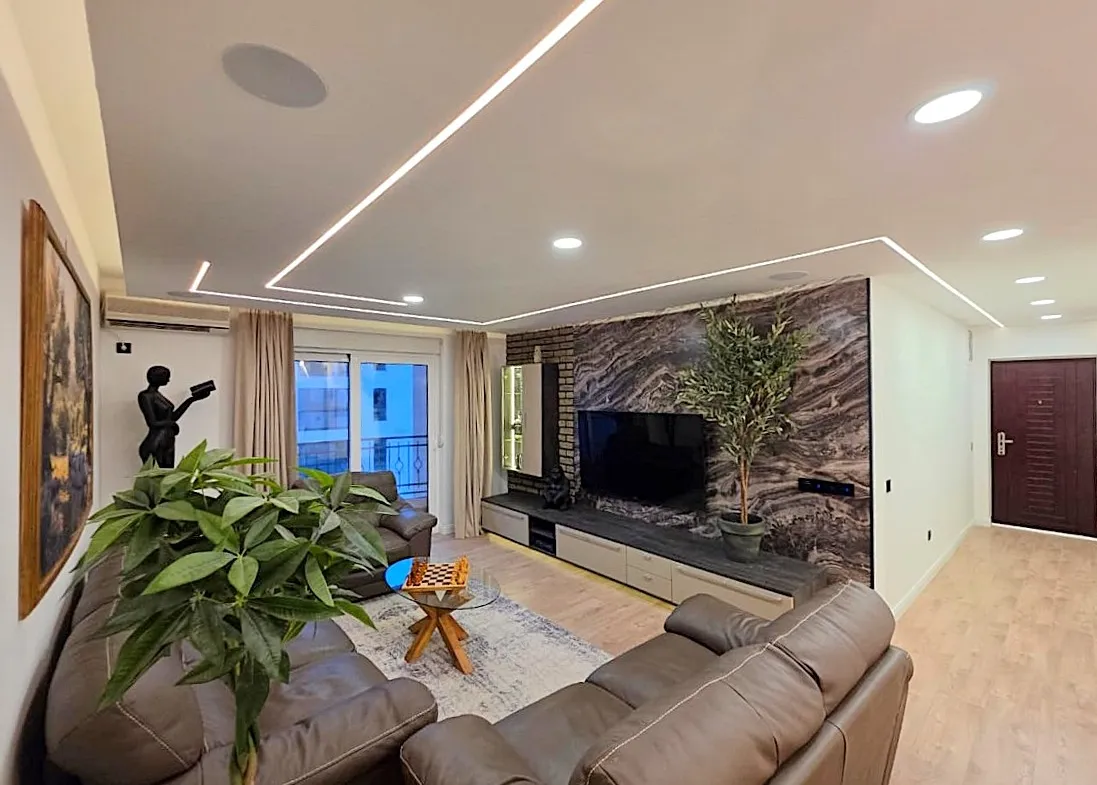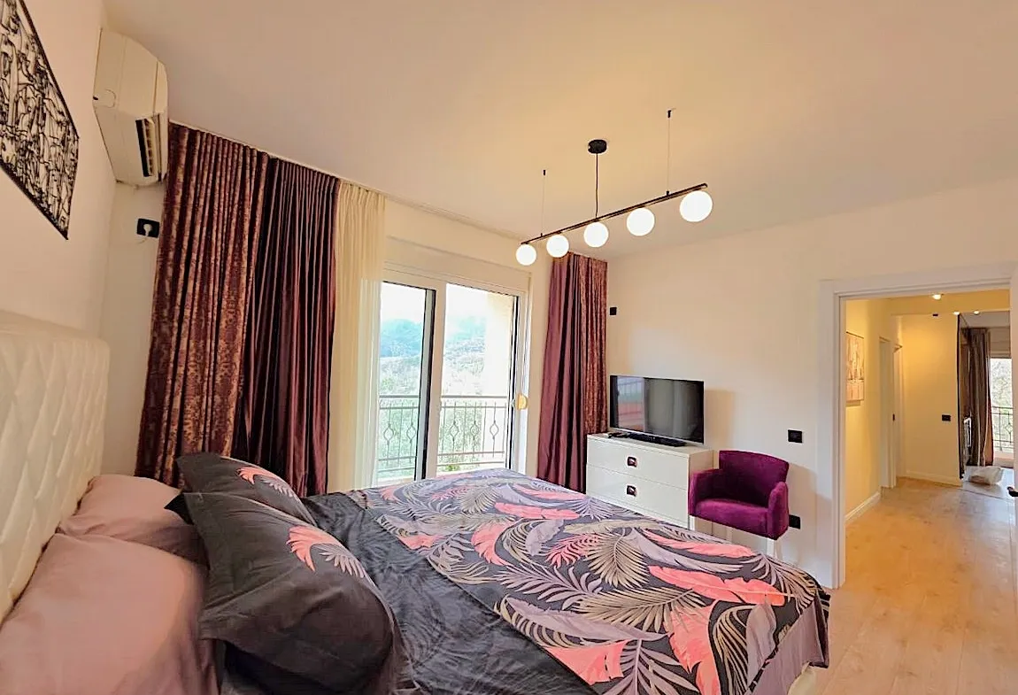 This three-bedroom apartment in Bečići is only 300 meters from the sea, combining modern design, high-quality finishes, and a highly functional layout across 106 m². The apartment features a spacious living room with a dining area and fully equipped kitchen, three bedrooms, two bathrooms, and a private sauna for ultimate relaxation.