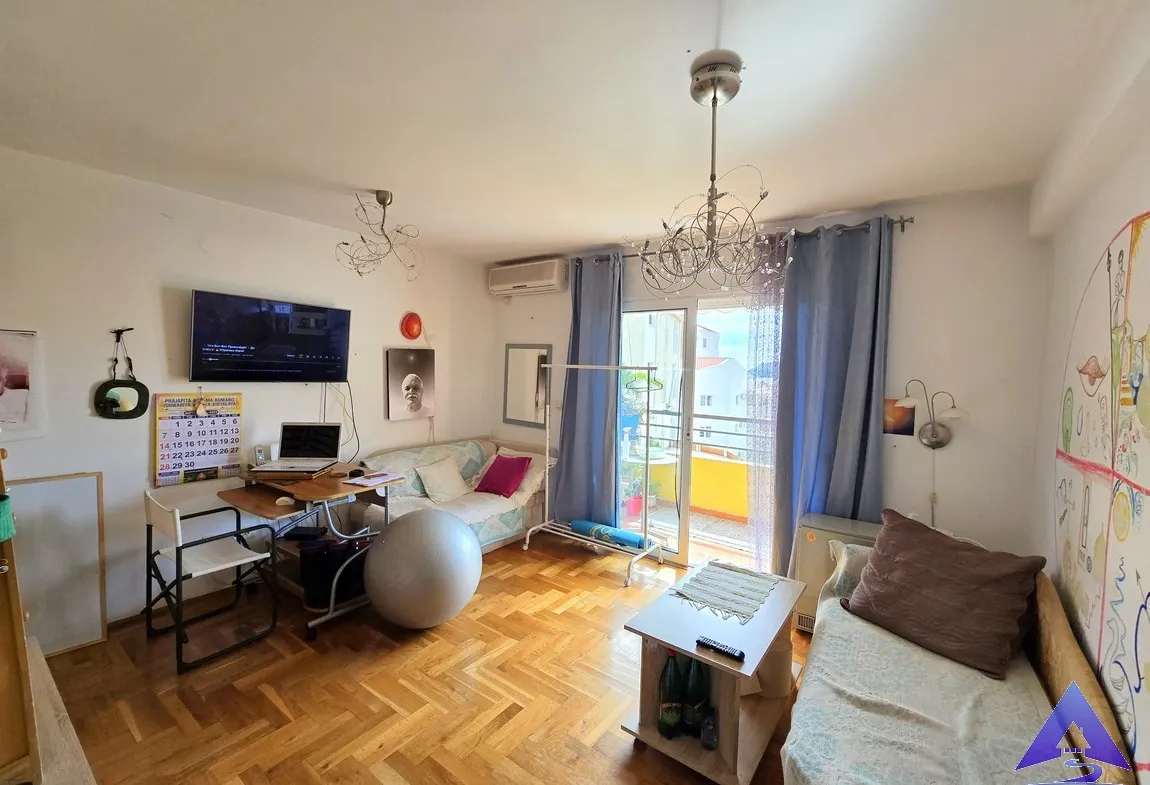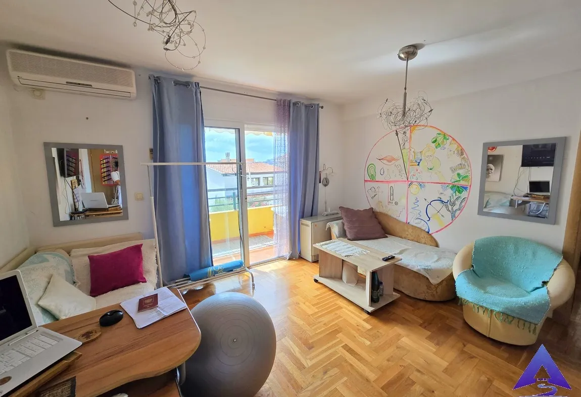 For sale in the peaceful Lazi neighborhood of Budva, this one-bedroom apartment offers both comfort and a great location. Situated on the first floor of an older residential building without an elevator, the property covers 39m² according to the deed, but with the spacious terrace, the actual living space is approximately 50m².