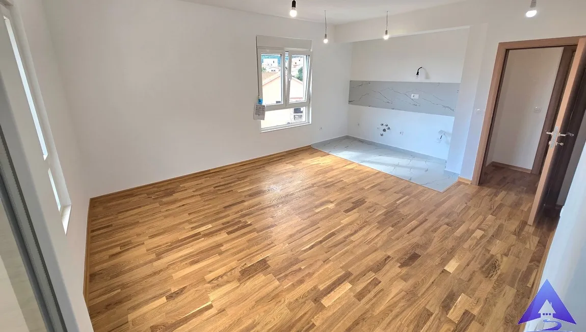 This one-bedroom apartment for sale is located in the peaceful and well-connected neighborhood of Podkosljun, Budva. Spanning 43m², it offers a functional layout that includes a comfortable living room with access to a terrace, a bedroom, a bathroom, and a compact kitchen area.