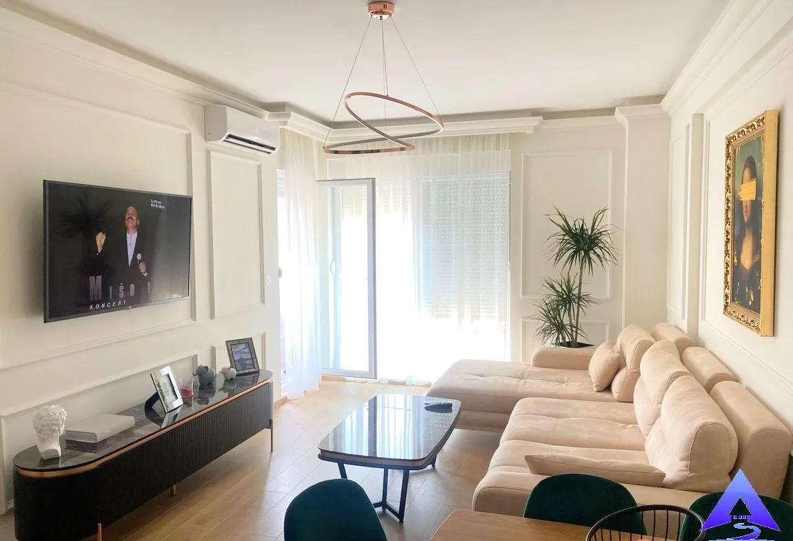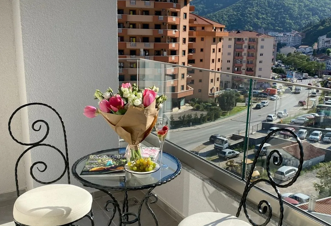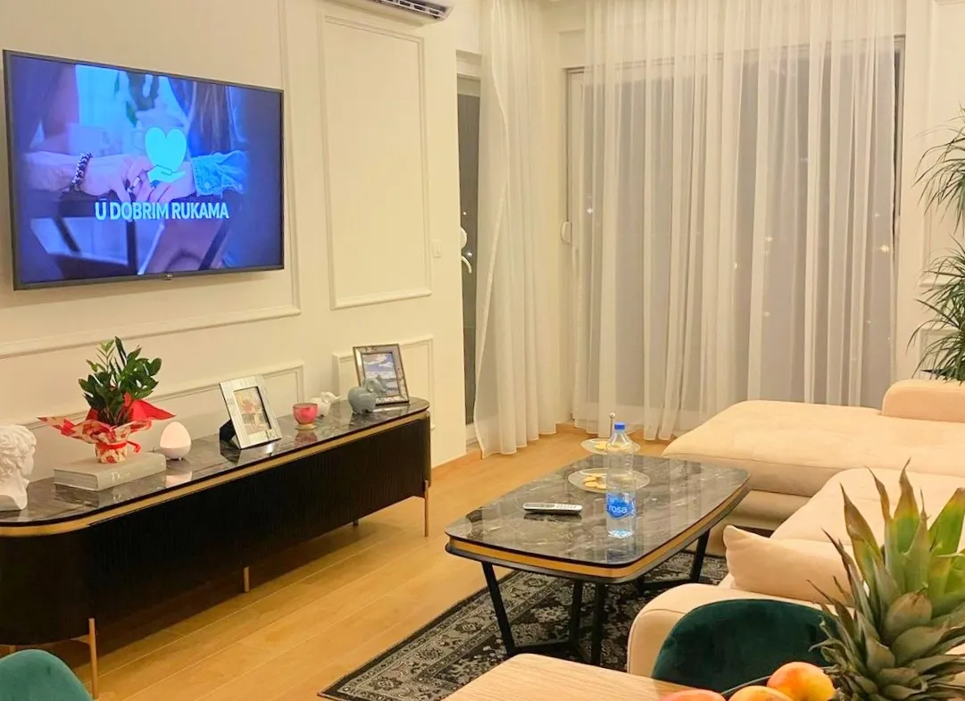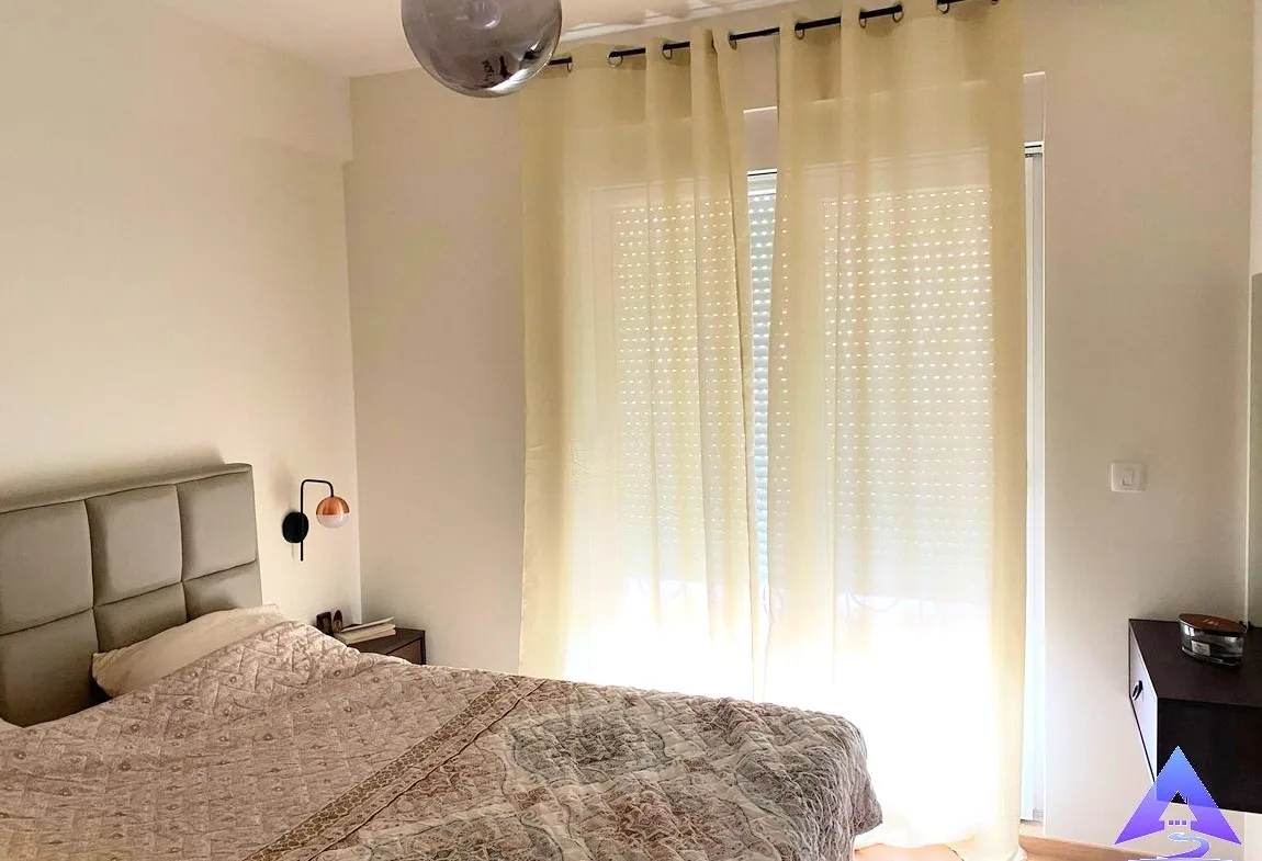 A modern and luxuriously furnished apartment of 47m² is available for sale, located on the fifth floor of the Mix Market building, positioned at the roundabout on the Budva bypass road next to Mega Mall. This location offers excellent connectivity and quick access to the city center, shopping areas, and everyday amenities.