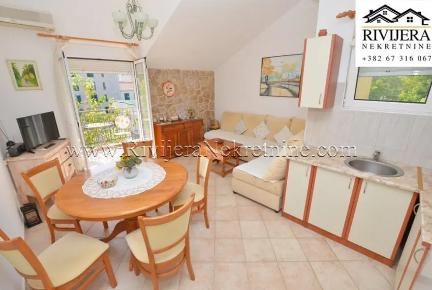 Layout: entrance hall, bathroom, bedroom, 2 terraces, living room with kitchen, (internal stairs), attic bedroom.