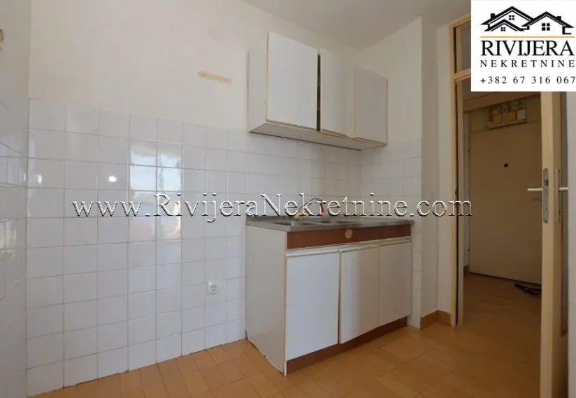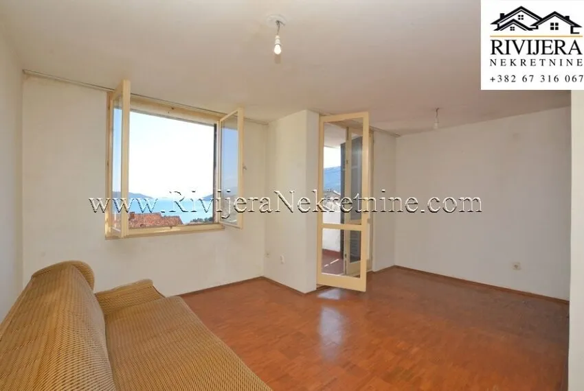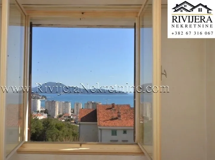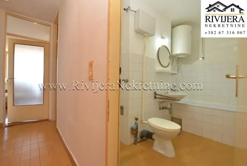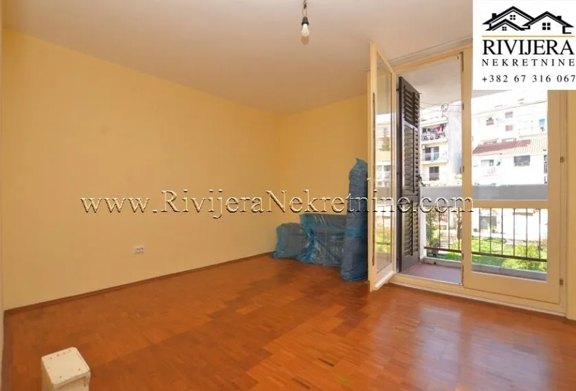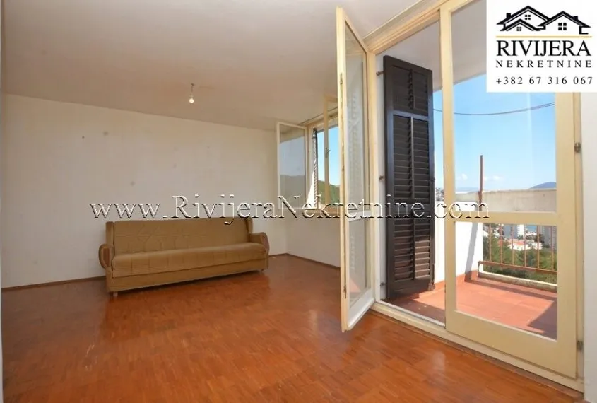 Area 54 m, layout: entrance hall, bathroom, kitchen, bedroom, two terraces, living room. Old building, third floor.