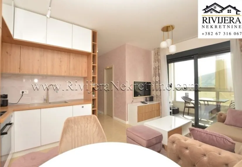 Apartment in excellent condition, fully equipped, total area 47 m. Layout: entrance hall, bathroom, two bedrooms, living room with kitchen, and terrace. Apartment facing south, sunny, with an elevator.