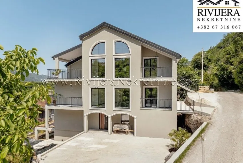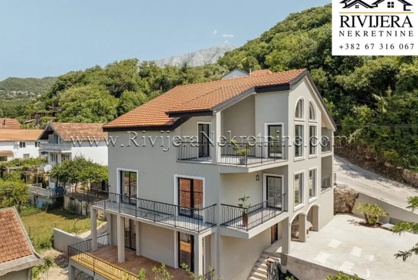 For sale – a beautifully renovated two-bedroom, two-bathroom ground floor apartment with a private garden and spacious terraces. Located in peaceful green hills above Herceg Novi. Calm surroundings with the soft sound of water from mountains stream next the house. Just a 5-minute walk to the nearest supermarket, and a pleasant 15-minute walk to the beach promenade, restaurants, and cafes. The charming Old Town of Herceg Novi is only 5 km away and Tivat and Dubrovnik airports are each within a 30-minute drive.