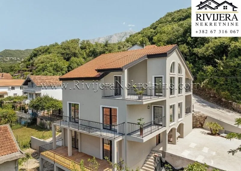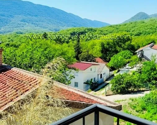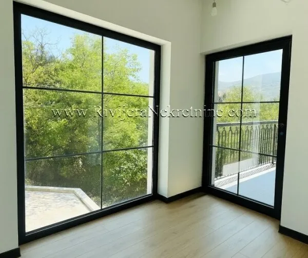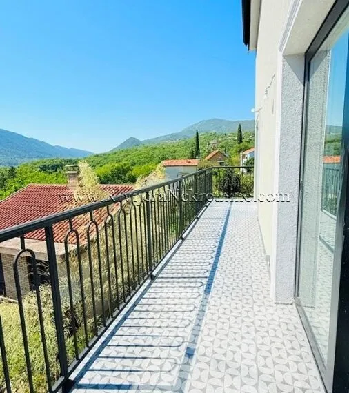 For sale – a beautifully renovated three-bedroom, two-bathroom first floor apartment with multiple private balconies and panoramic views of the surrounding mountains and forest. Located in peaceful green hills above Herceg Novi, the home offers calm surroundings with the soft sound of water from a mountain stream next to the house.