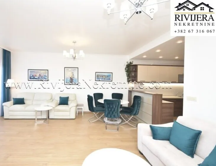 For sale is a beautiful, fully furnished two-bedroom apartment of 88 m, located in a quiet and well-maintained complex with a swimming pool in Zelenika.