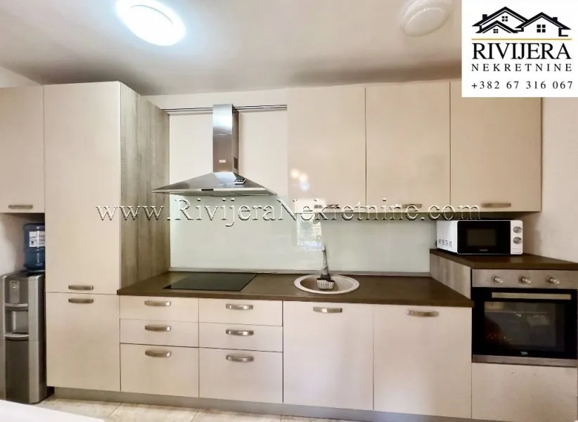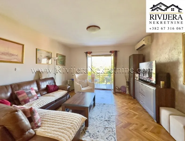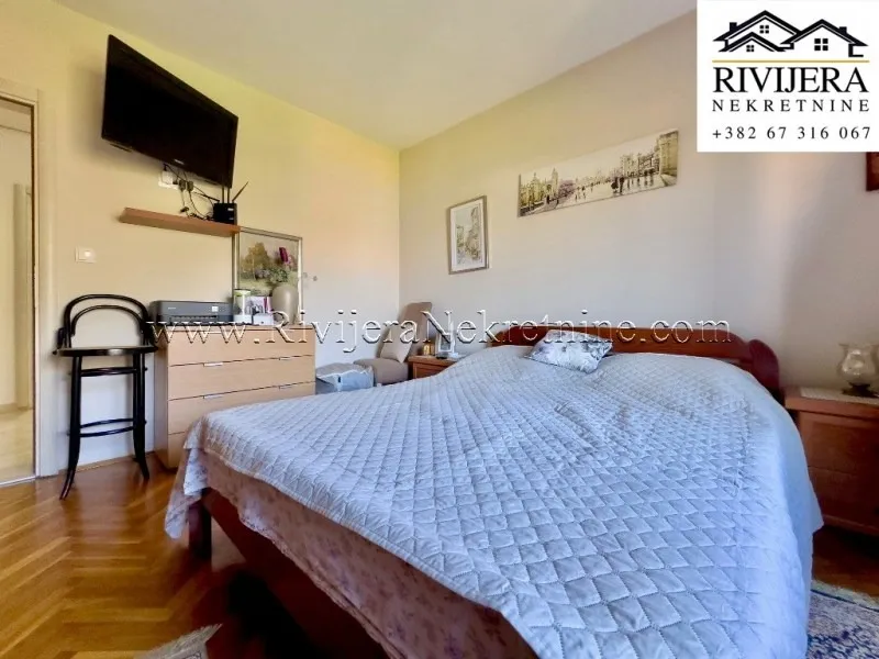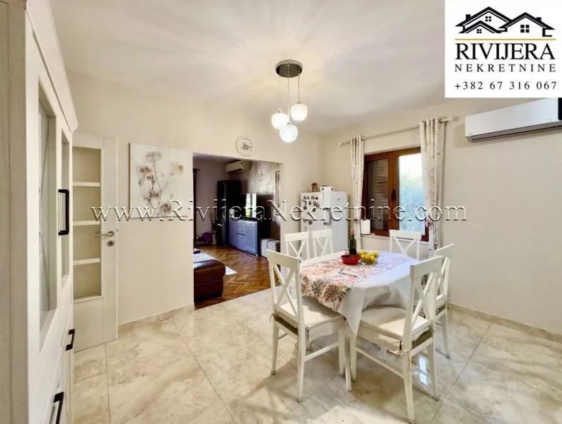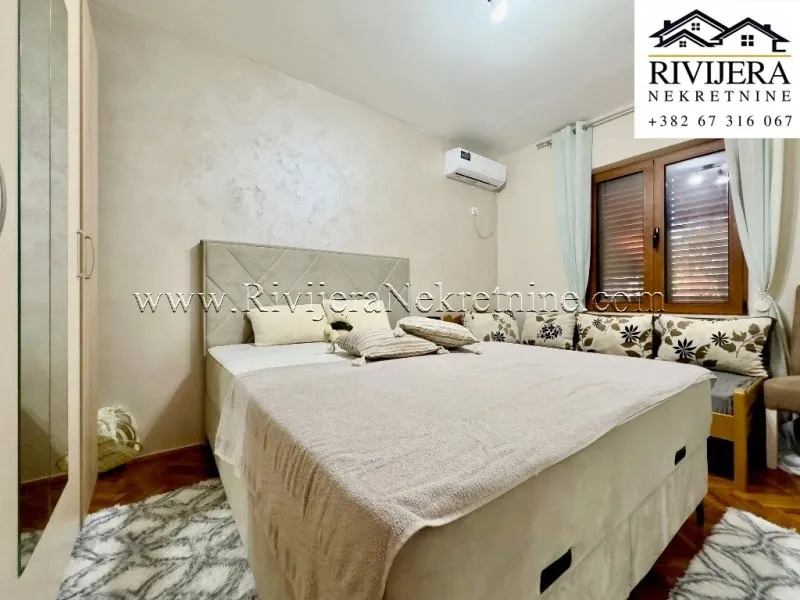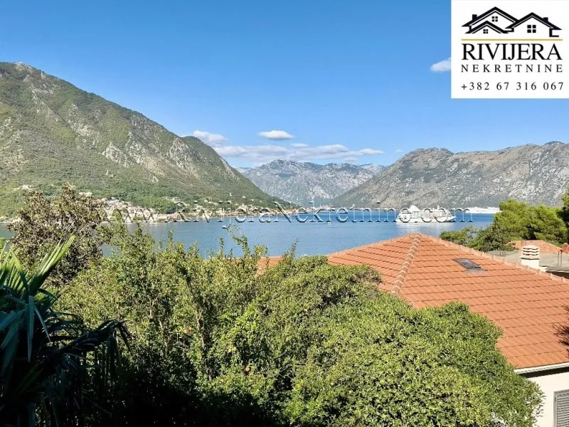 In one of the most sought-after locations in Dobrota, a two-bedroom apartment is for sale, situated on the first floor of a family house that is legally subdivided and registered under separate PD numbers as a residential building.