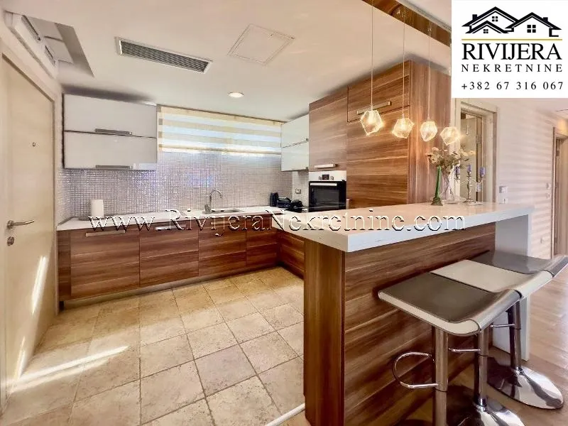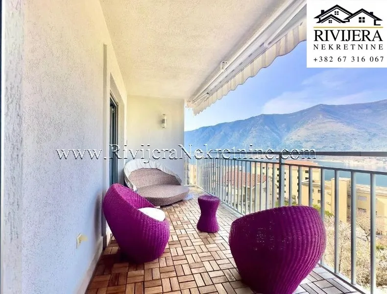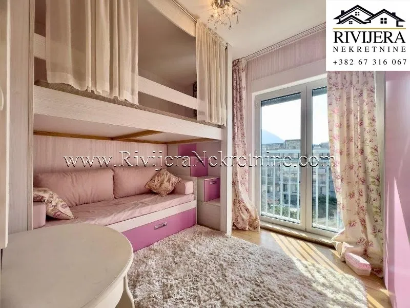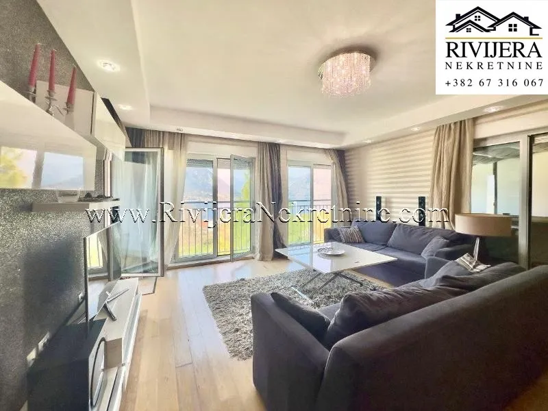 A beautiful three-bedroom apartment of 102 m² is for sale in the prestigious Buena Vista complex in Dobrota, close to the sea. The apartment offers a spectacular view of the sea and mountains and is fully furnished with luxury furniture, ready for immediate move-in or rental.