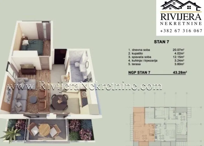 Total: 43.28 m²