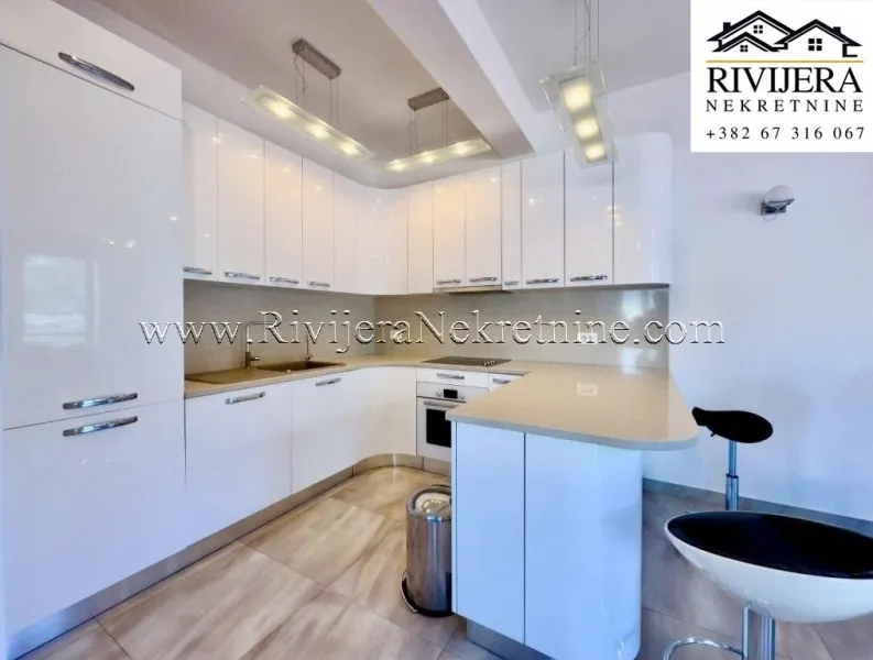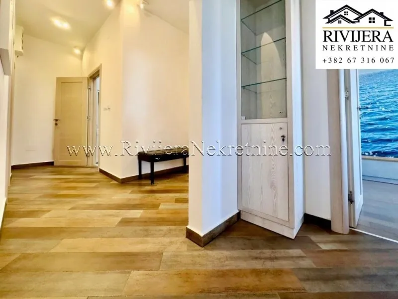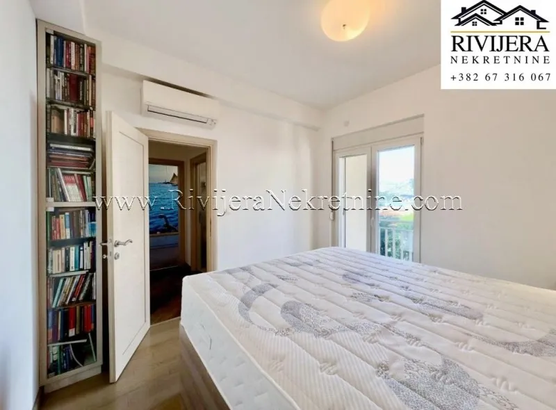 An exclusive three-bedroom apartment with a beautiful sea view, 108 m², located in one of the most sought-after areas of Kotor – Zlatne Njive, just a few minutes’ walk from the Old Town.