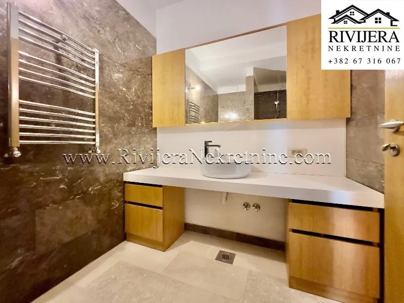 The interior is finished exclusively with natural stone. The apartment is equipped with top-quality water-based and underfloor heating, with Bosch 200-liter boilers placed in separate technical rooms.