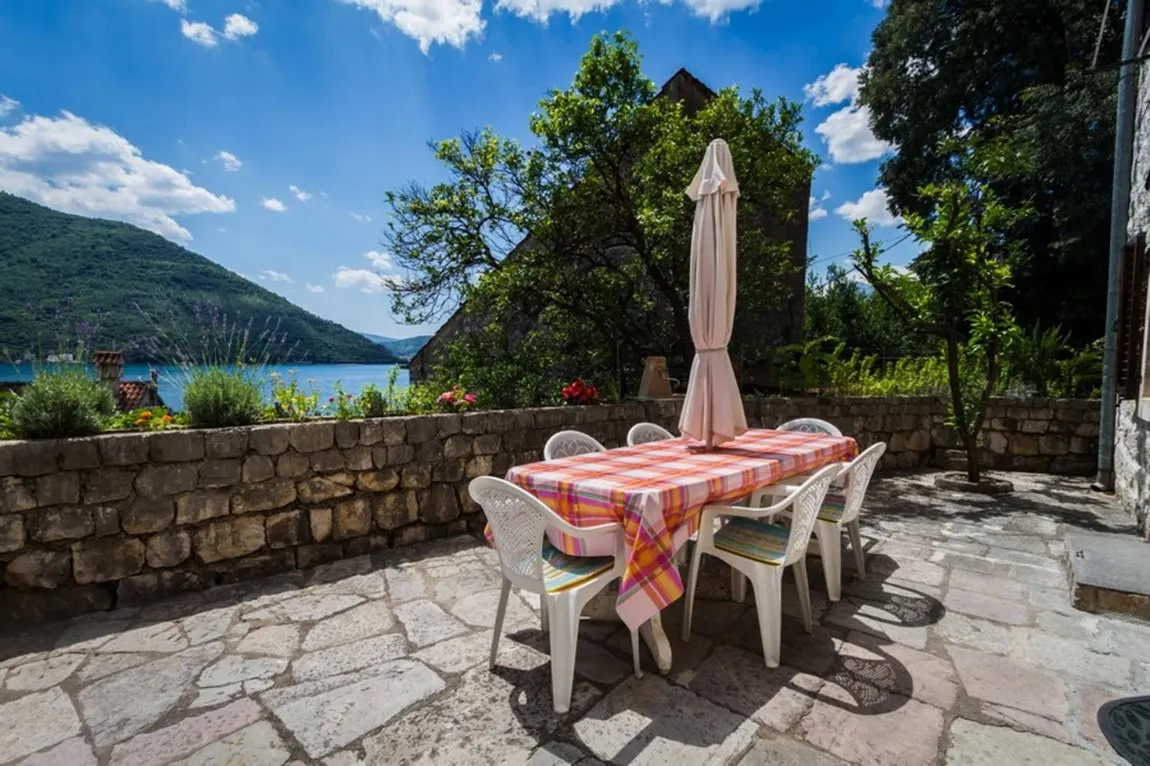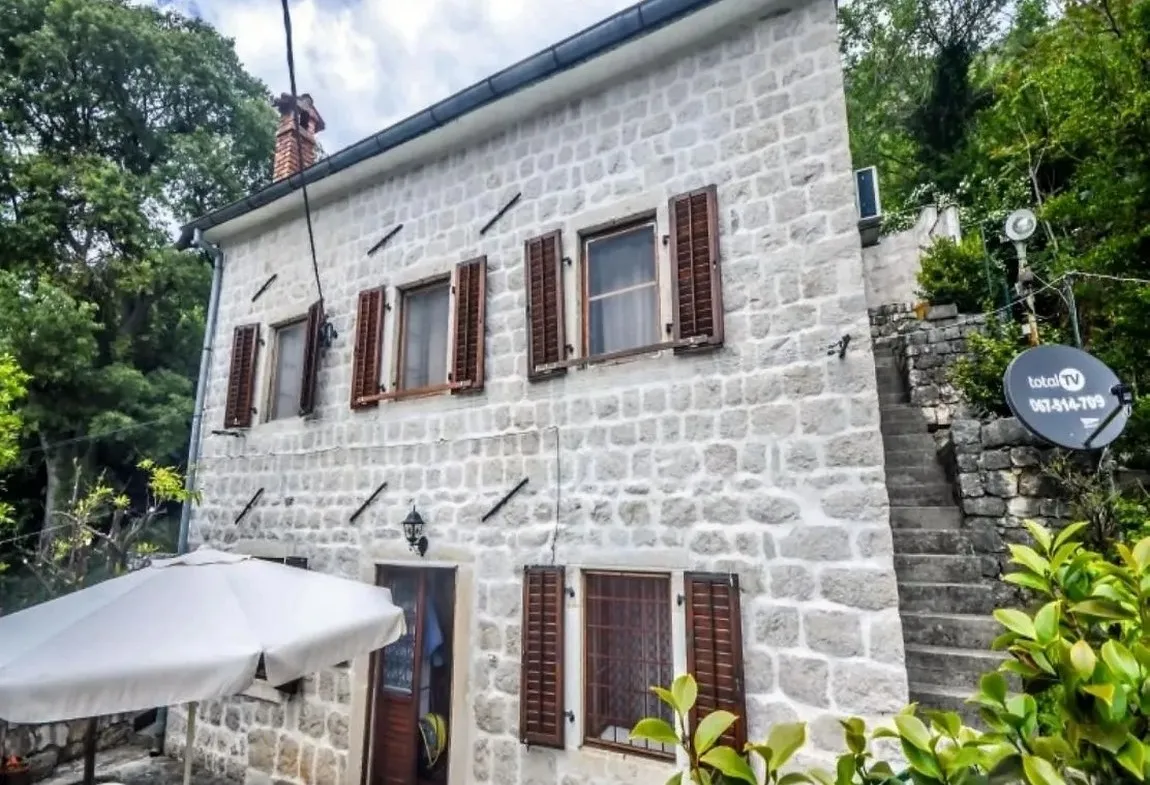 The ground floor features a spacious living room, a fully equipped kitchen, a pantry, and a bathroom. In front of the house is a large terrace, ideal for dining al fresco while enjoying views of the Bay of Kotor.