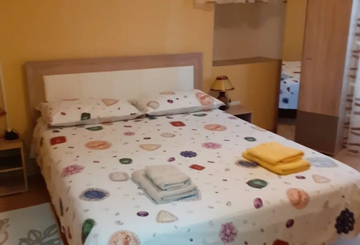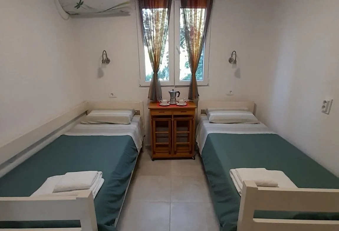 The first floor includes two bedrooms and a bathroom. One room features a double bed, while the other includes a double bed plus two single beds – perfect for larger families or holiday rentals.