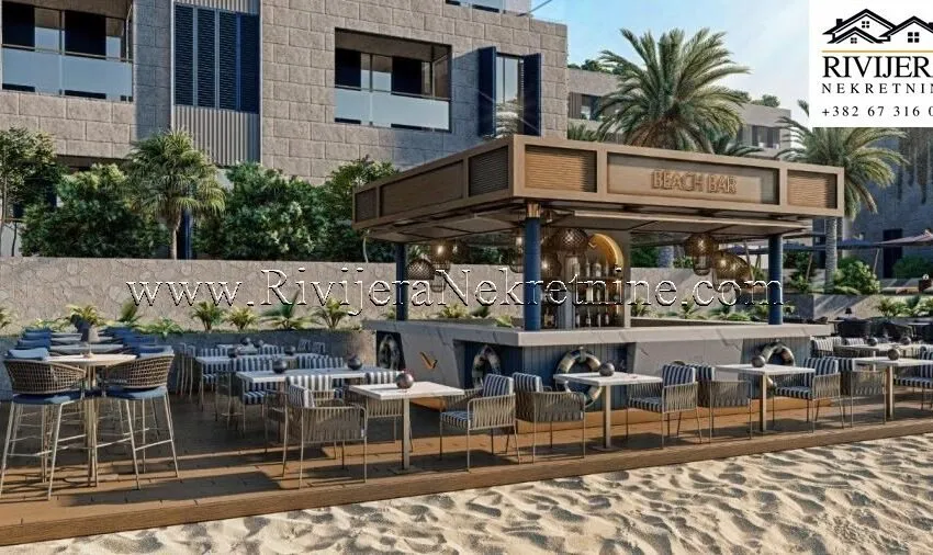 A two-bedroom seafront apartment for sale within the Mövenpick 5* Teuta Residences, managed by the Accor Hotels group — the largest hotel operator in Europe and the second largest in the world in terms of branded property management.