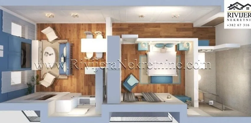 A one-bedroom apartment under construction with a sea view is for sale, covering 49 m², located in the picturesque town of Risan, Municipality of Kotor.