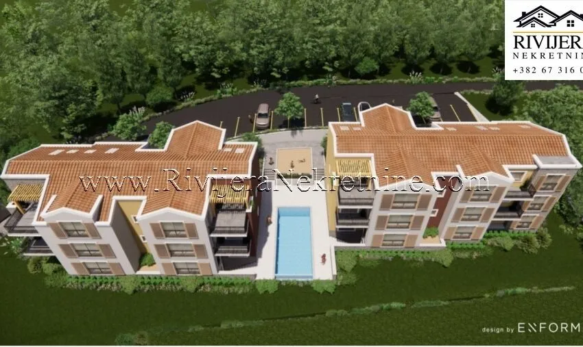 A three-bedroom apartment under construction is for sale in Skaljari, Kotor Municipality. The building is located in an elevated position, away from the city noise, approximately 1 km from Kotor Old Town. The apartment has a total area of 96m².