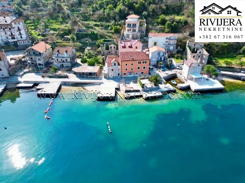 In one of the most beautiful and peaceful parts of the Bay of Kotor, in the picturesque village of Stoliv, this unique stone house is located right on the seafront. The location offers complete tranquility, crystal-clear water, and a stunning view of the bay and surrounding mountains, making this property ideal both for living and for tourist rentals.