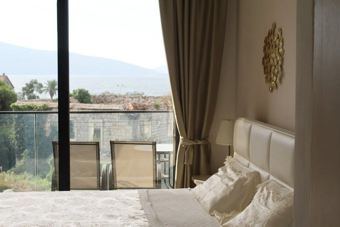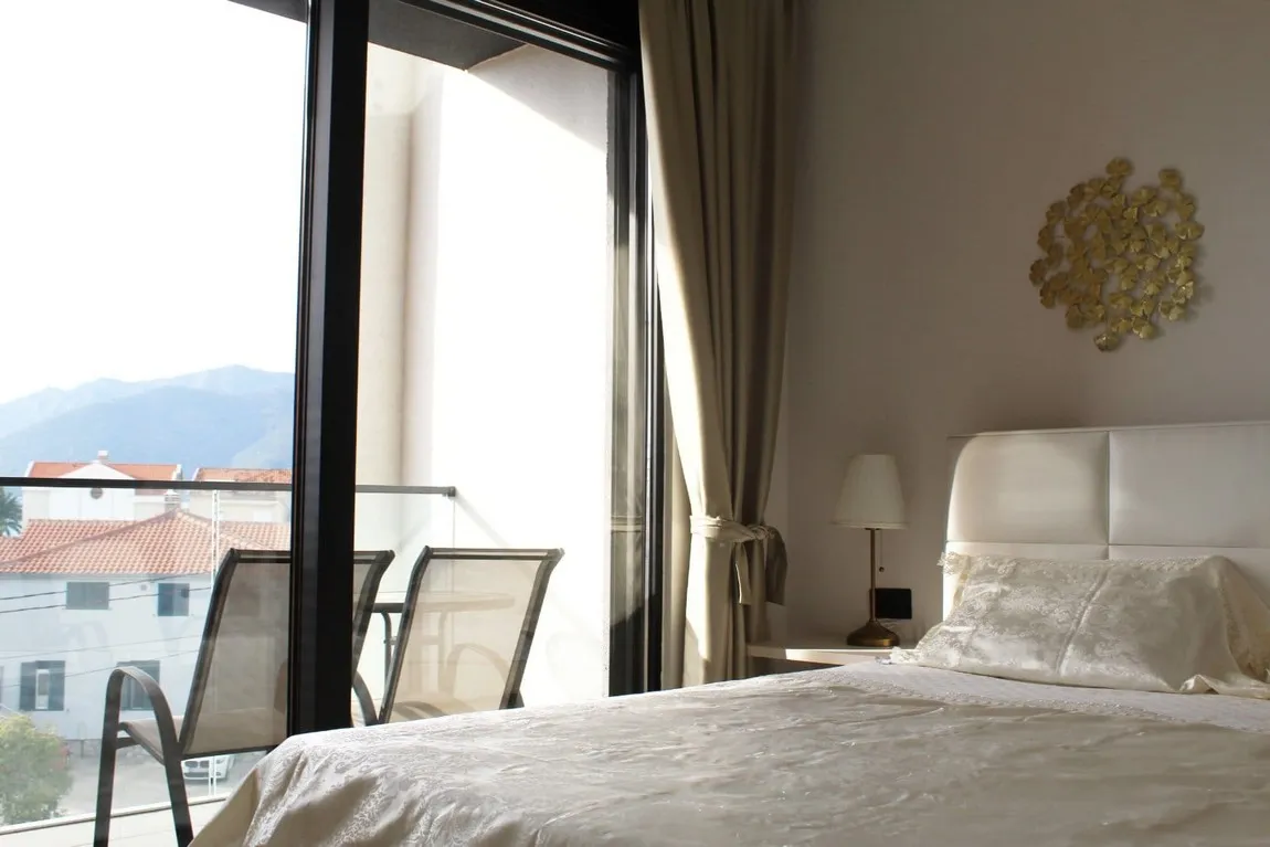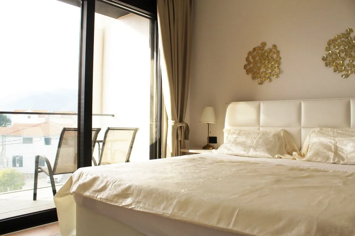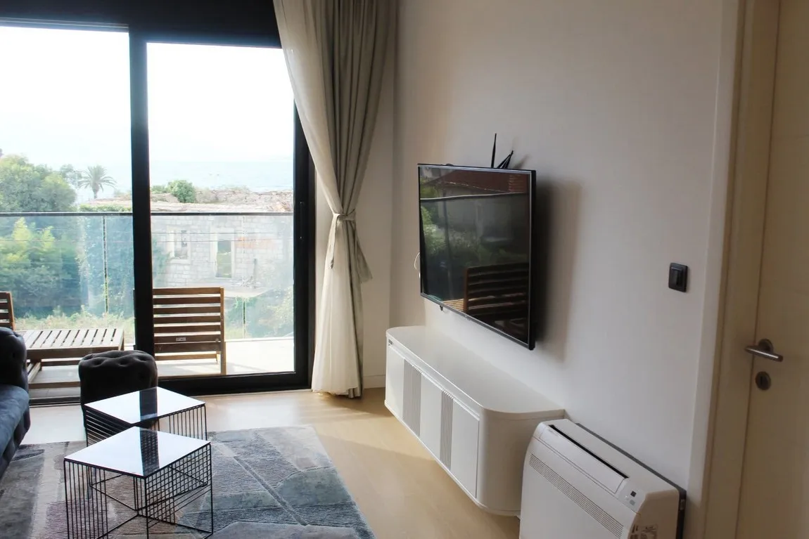 Located in the sought-after neighborhood of Donja Lastva, Tivat, this beautifully furnished one-bedroom apartment offers a rare opportunity to own property just steps from the coast. Set on the second floor of a modern, well-maintained building in the second sea zone, the 56m² apartment features a spacious living area with access to a terrace with a sea view.
