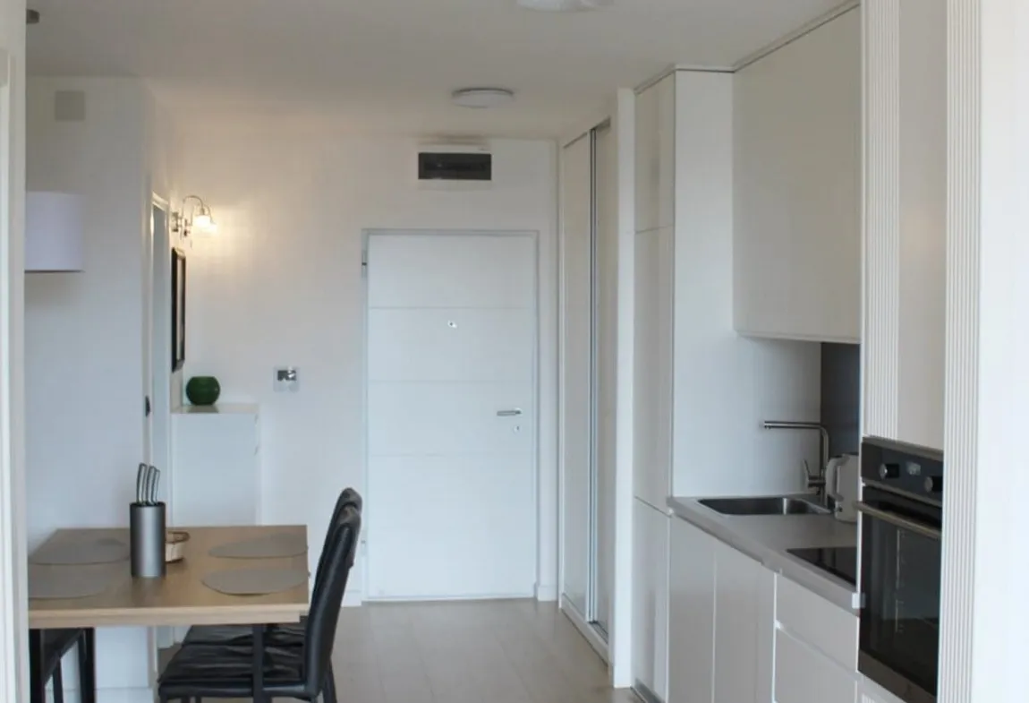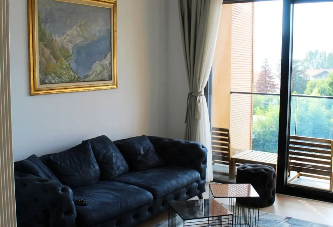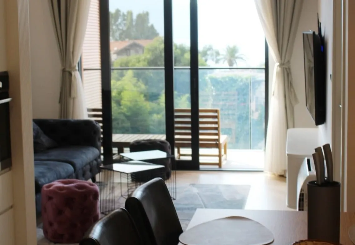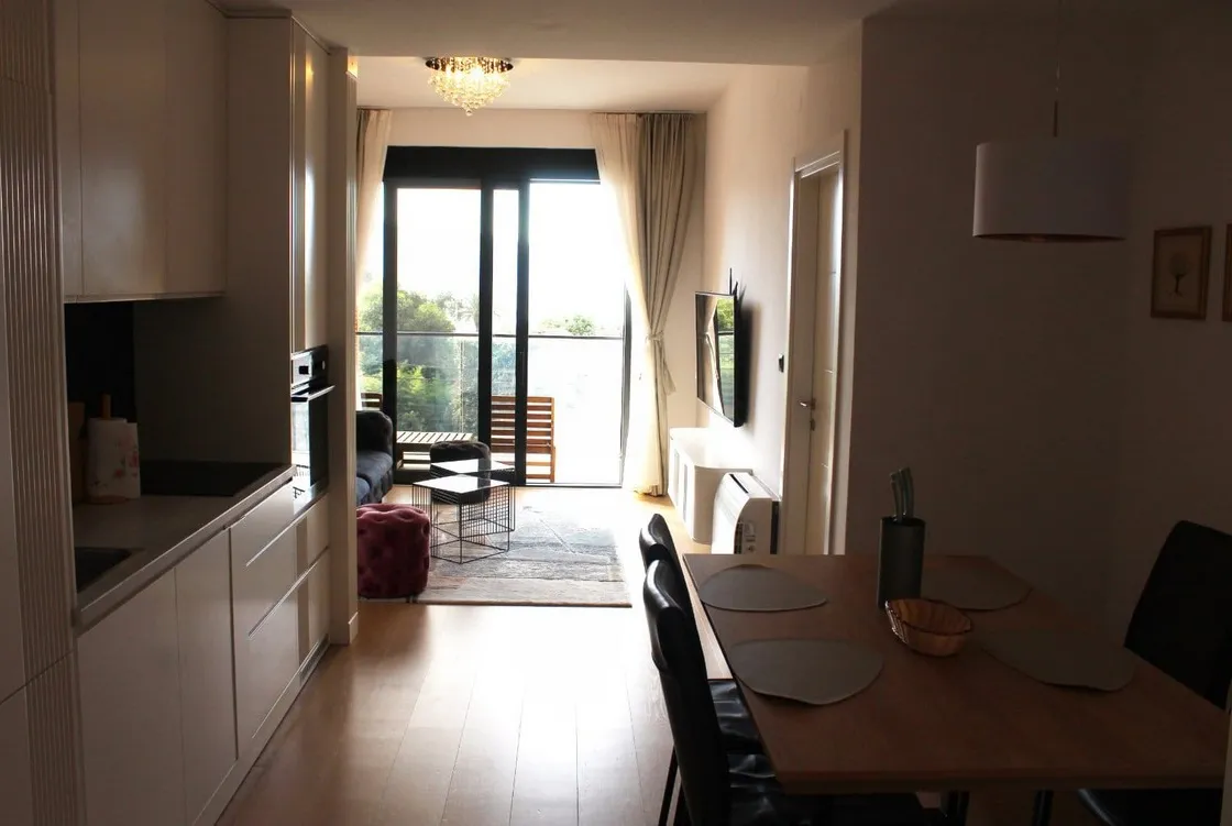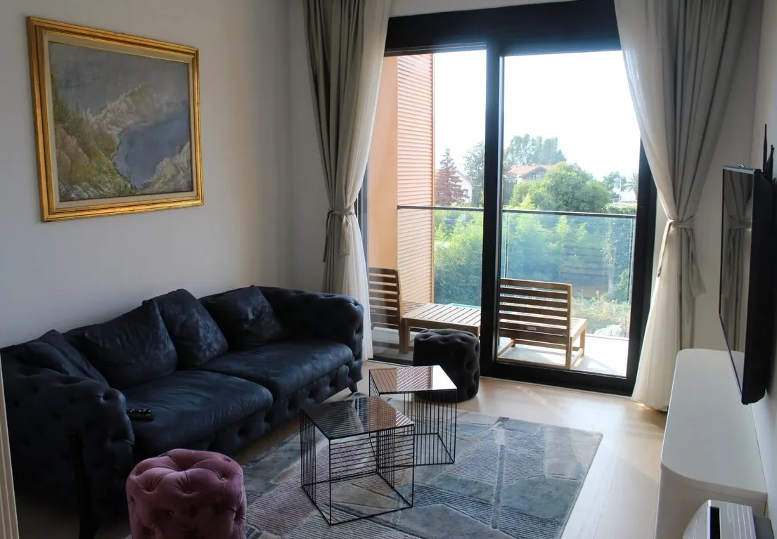 Located in the sought-after neighborhood of Donja Lastva, Tivat, this beautifully furnished one-bedroom apartment offers a rare opportunity to own property just steps from the coast. Set on the second floor of a modern, well-maintained building in the second sea zone, the 56m² apartment features a spacious living area with access to a terrace with a sea view.