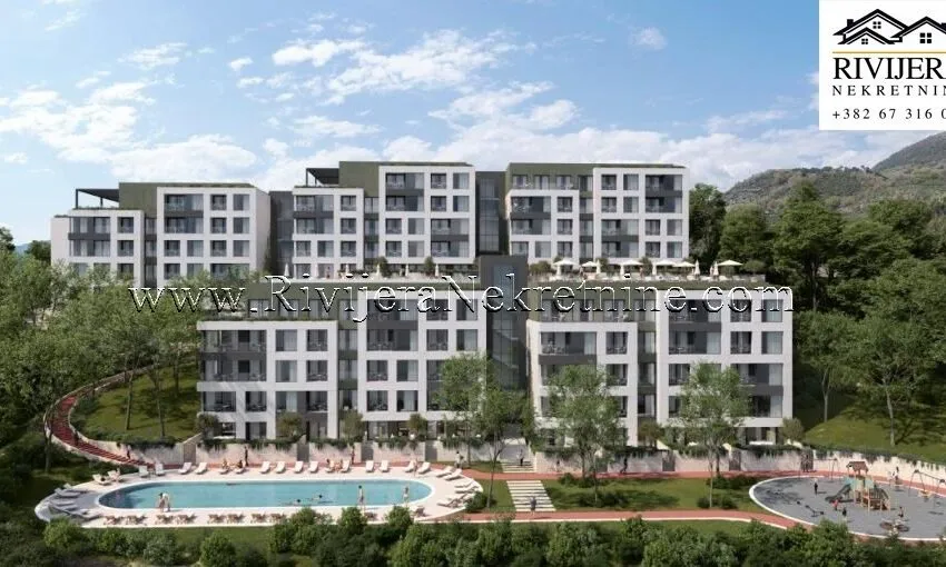 A one-bedroom apartment is for sale in a modern residential complex located in a peaceful area of Tivat, in the Mrčevac neighborhood. The apartment has a total area of 44 m².