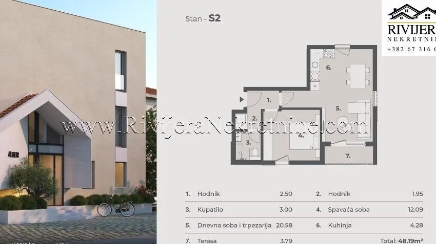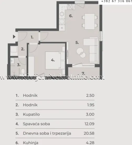 A one-bedroom apartment under construction is for sale. The apartment has a surface area of 51 m² and is located in the Dumidran neighborhood, Municipality of Tivat.