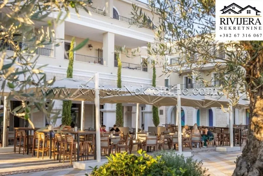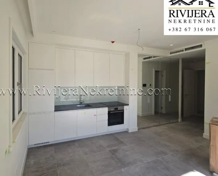 A 37 m² studio apartment is for sale, including a garage space, located in the luxury residential complex Luštica Bay.