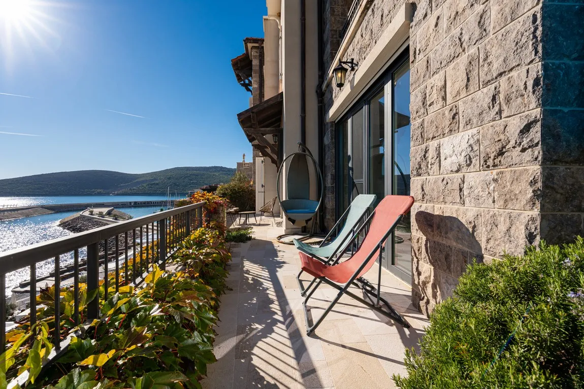 Located in one of the most prestigious addresses on the Montenegrin coast, this luxury three-bedroom apartment is set on the first line to the sea within the exclusive Luštica Bay complex. The property offers unobstructed views of the Adriatic Sea and the private beach area of the resort.