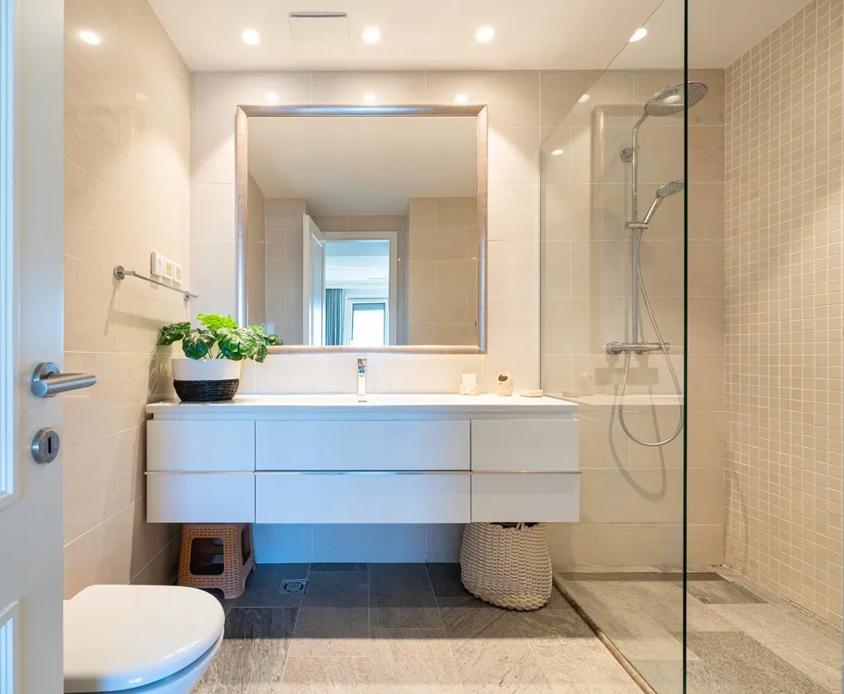 second bedroom and children’s bedroom sharing a modern bathroom,
