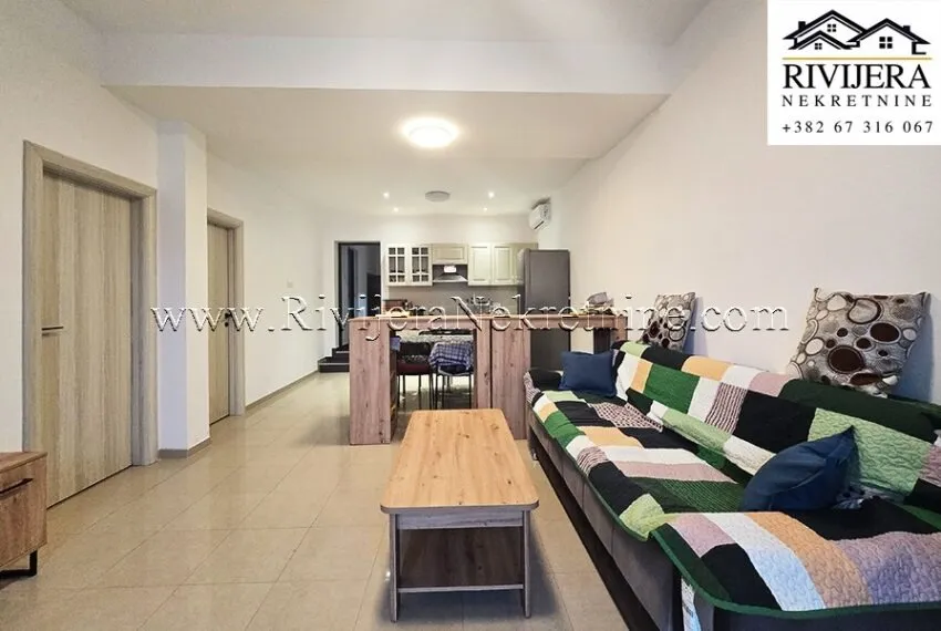 Located in a quiet residential area of Radovići, just 150 meters from the exclusive Luštica Bay resort and about 1 kilometer from the stunning Plavi Horizonti Beach, this spacious property offers an excellent opportunity for both comfortable living and investment.