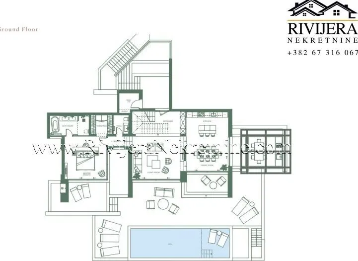 The villa also includes a private swimming pool with a volume of 37 m³, ideal for relaxation and enjoyment throughout the season.