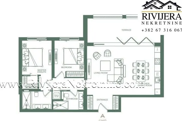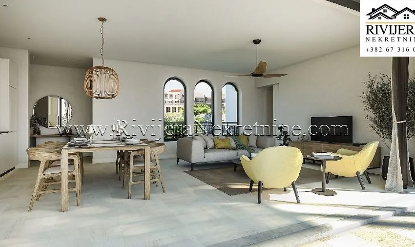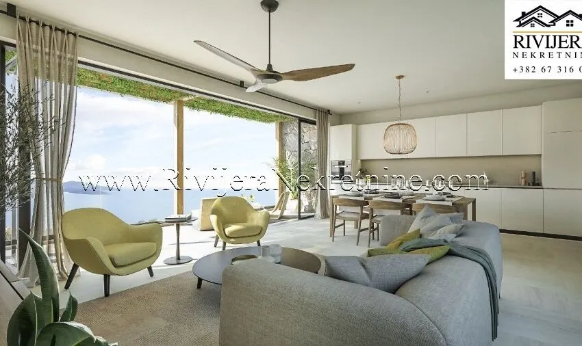 A two-bedroom apartment GA413 is available for sale, offering a beautiful view of the golf course and the Adriatic Sea.