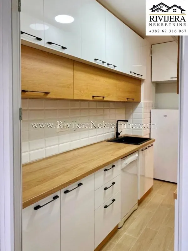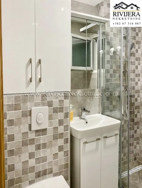 This apartment is located in Seljanovo, Tivat, on a high ground floor, just 350 meters from the sea along a flat terrain.