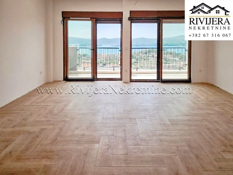 A two-bedroom apartment with a sea view is for sale, with a total area of 87 m² (74 m² of internal space + 13 m² balcony). The apartment is located on the third floor.