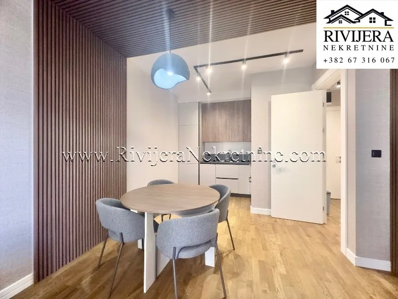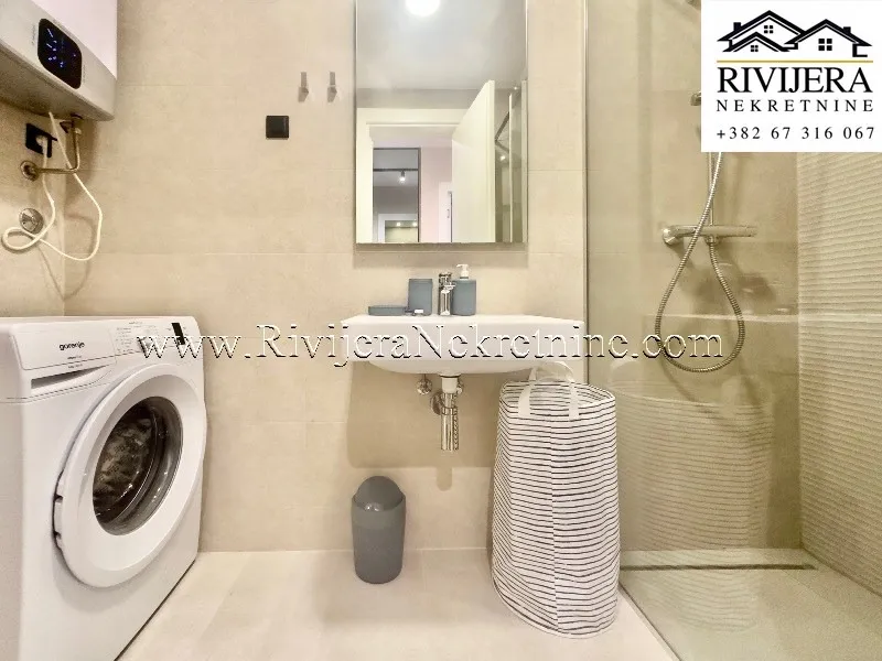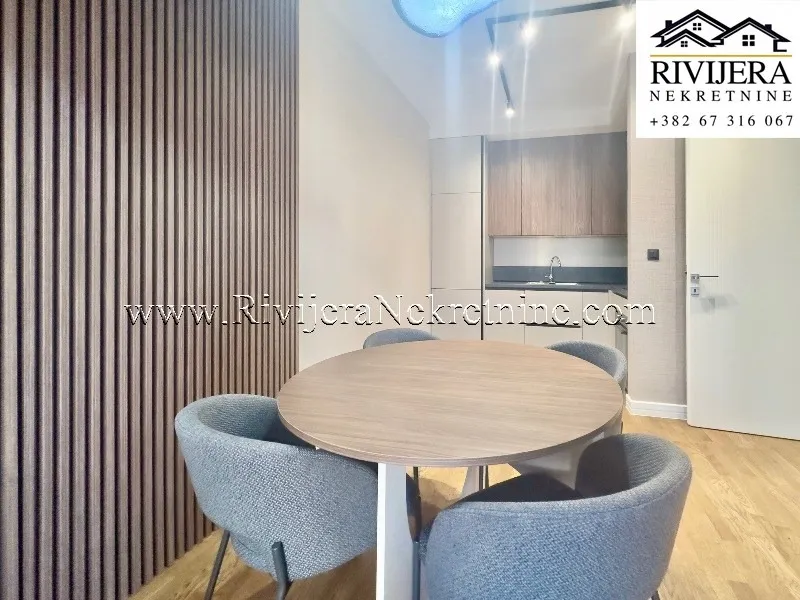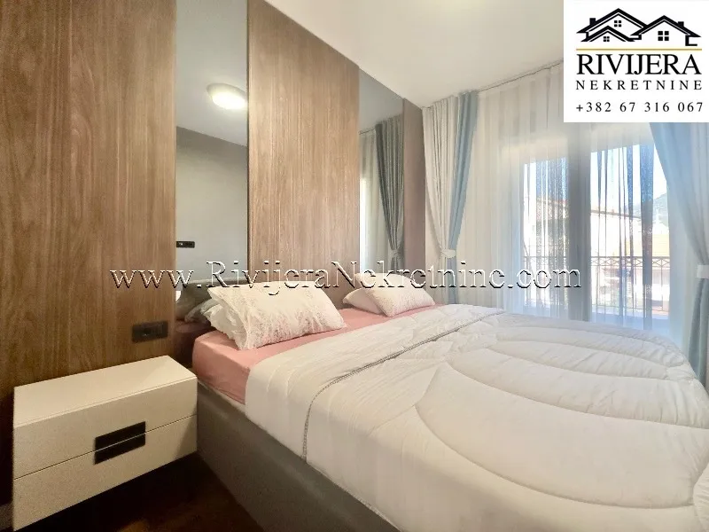 A luxuriously furnished one-bedroom apartment is for sale in Tivat, ready for immediate move-in. The apartment is located in a high-quality residential building, one of the best newer buildings in the city.