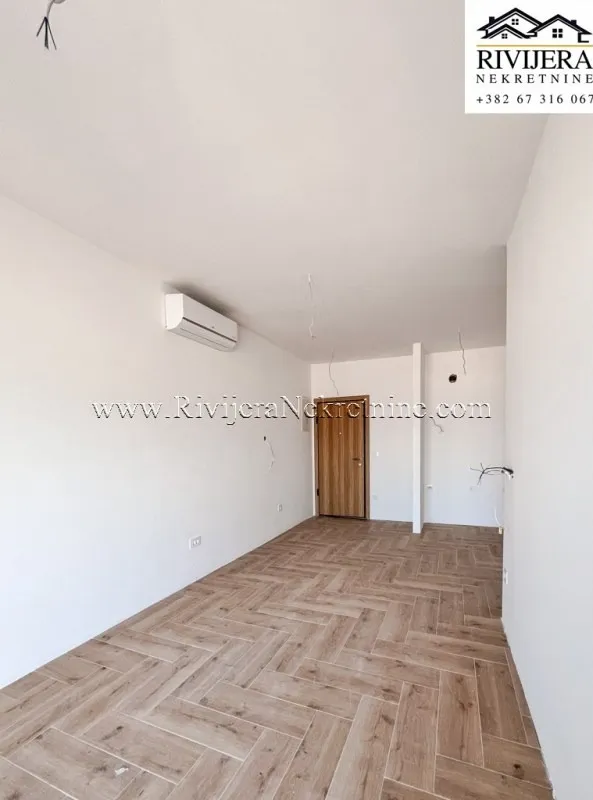 For sale: a one-bedroom apartment on the ground floor of a residential building, with a total area of 45 m² (37 m² of indoor space + 8 m² of terrace), along with an additional 14 m² of green terrace.