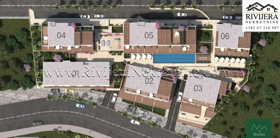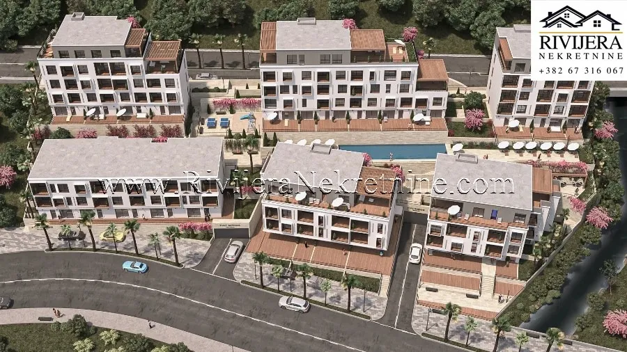 A one-bedroom apartment of 34 m² is for sale in a luxury residential complex in Tivat. The apartment is located on the second floor (third floor) of Building No. 6.