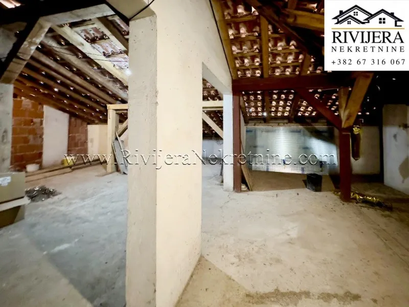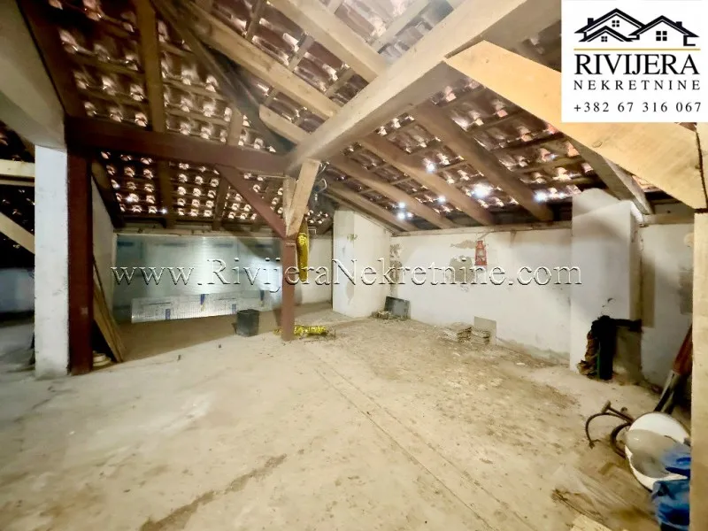 An unfinished attic space in a residential building is for sale, located in an excellent area of Seljanovo, Tivat.