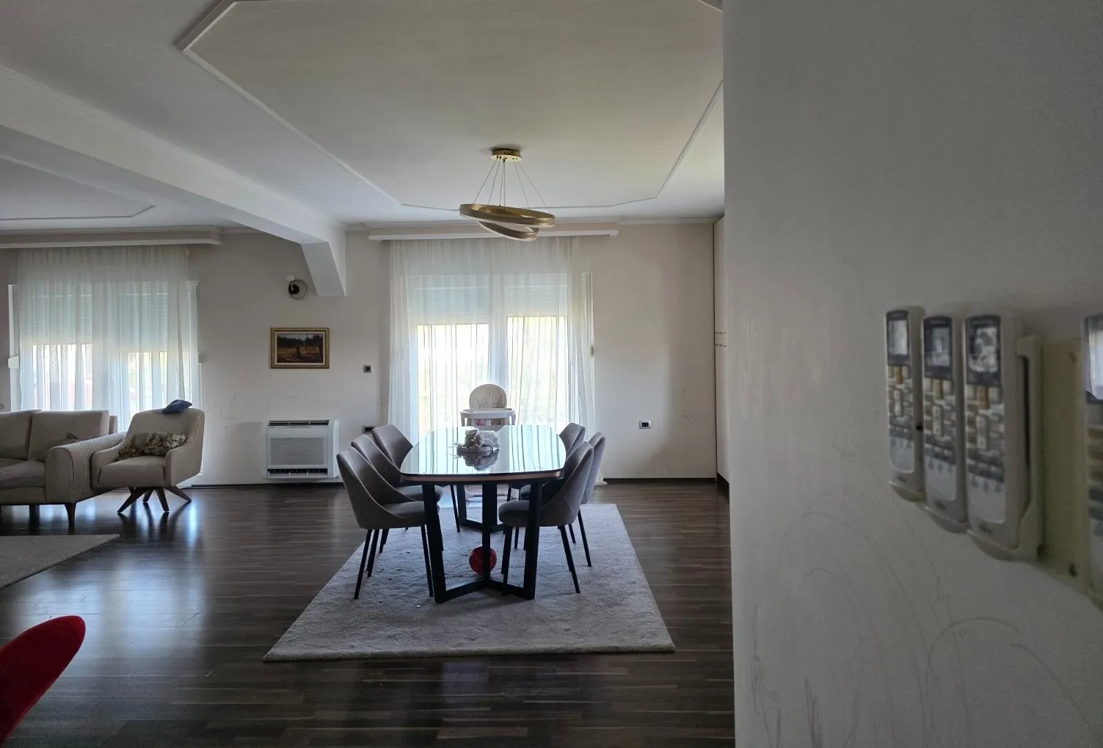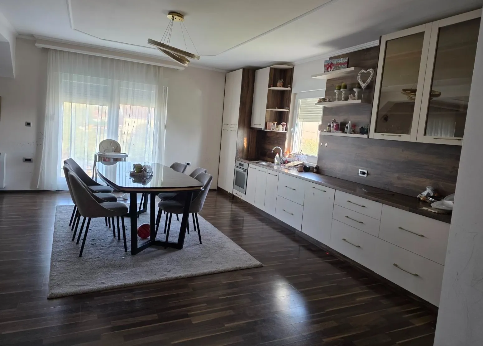 On the ground floor of the house there are 2 business premises of 42m and 49m, registered as business premises. On the first floor of the house: living space of 120m, 3 bedrooms, 2 bathrooms, living room of 60m, 6m long kitchen. On the roof of the house there is a terrace of 120m. It has a multi split system for heating and cooling each room separately, as well as a 400l boiler for solar heating.