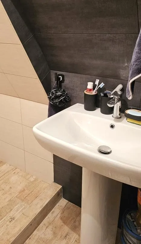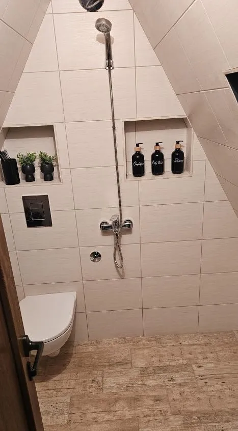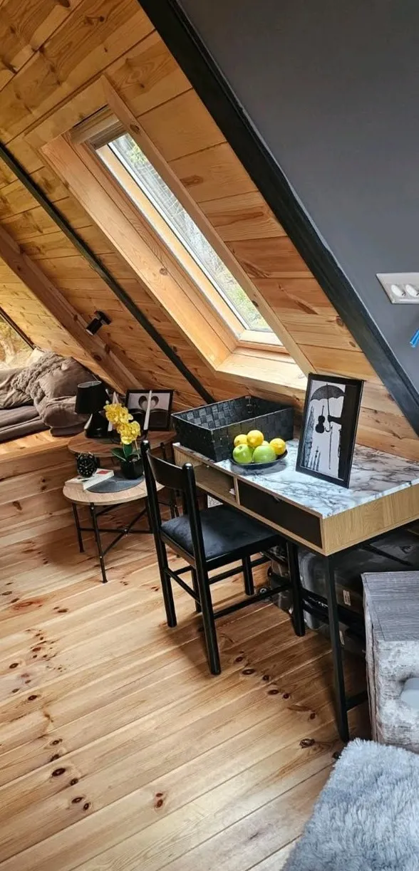 It consists of two levels plus an attic, which is fully finished and furnished.