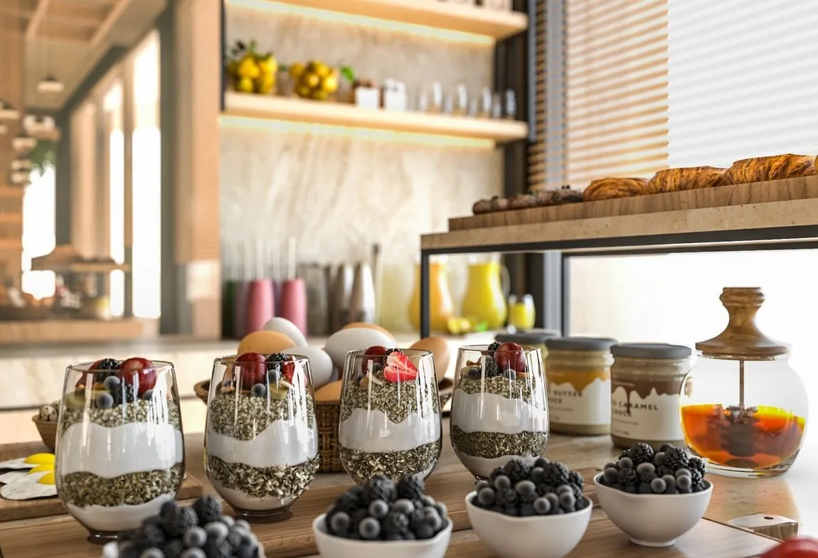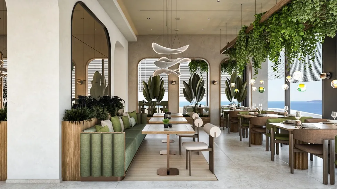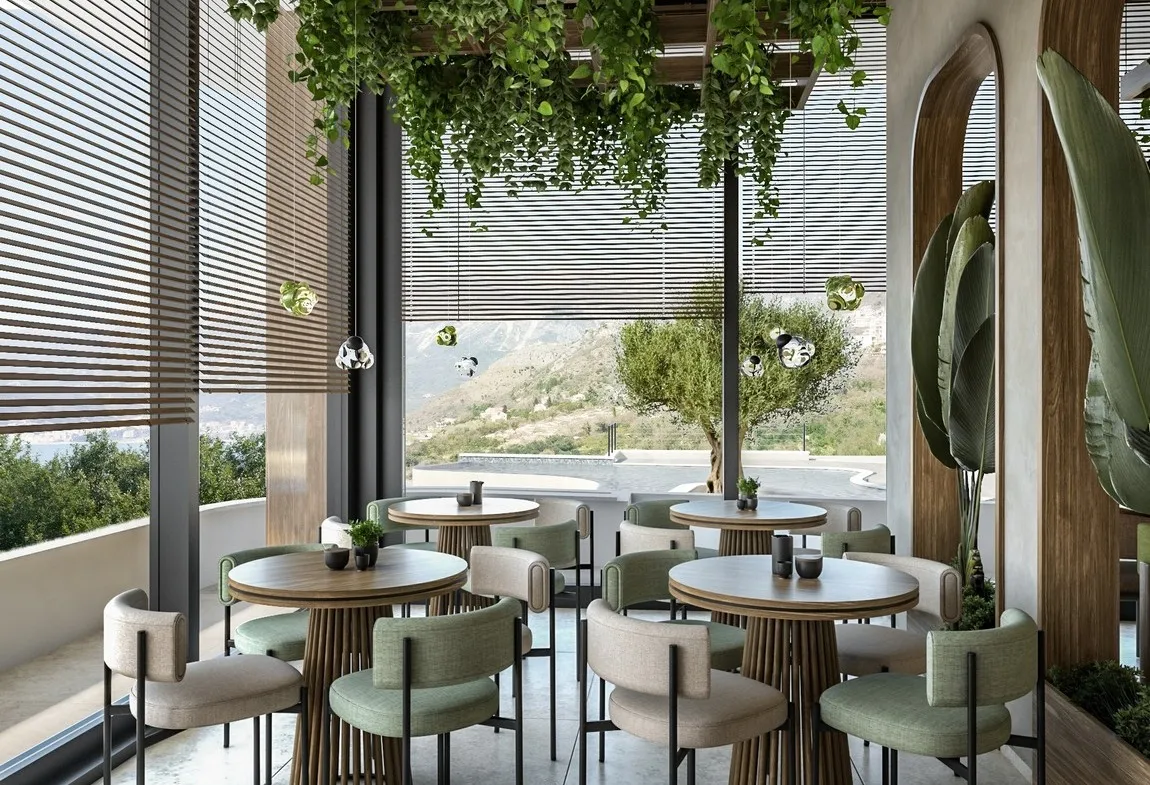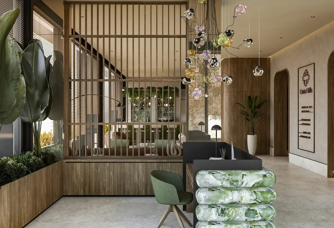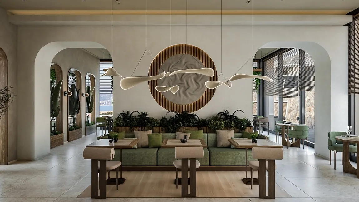 Relaxation and socializing areas, including yoga zones and meditation spaces