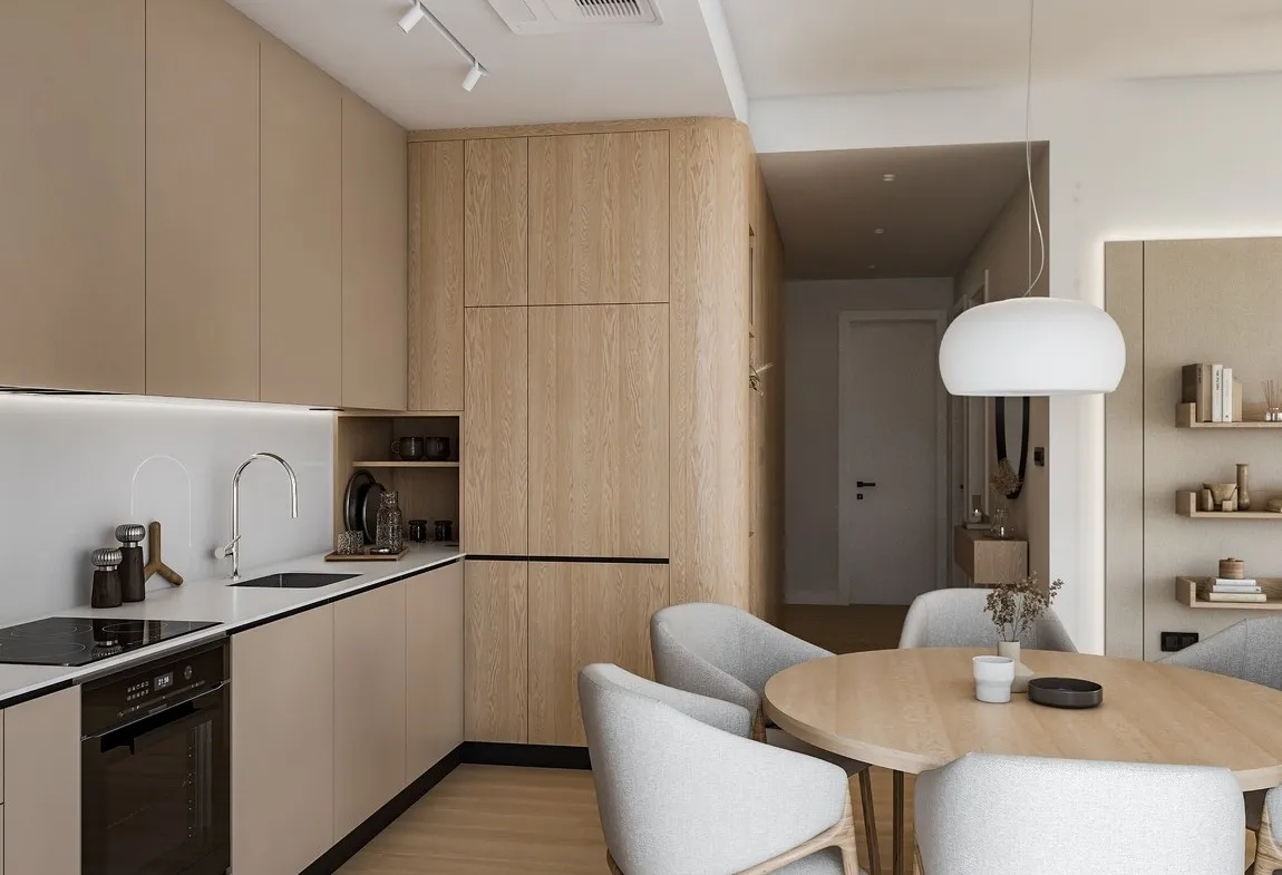 A spacious living room seamlessly integrated with a kitchen and dining area, creating an inviting atmosphere for both relaxation and entertainment