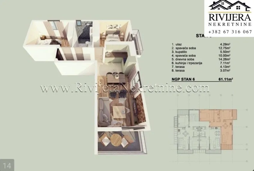 • Living room: 14.26 m²