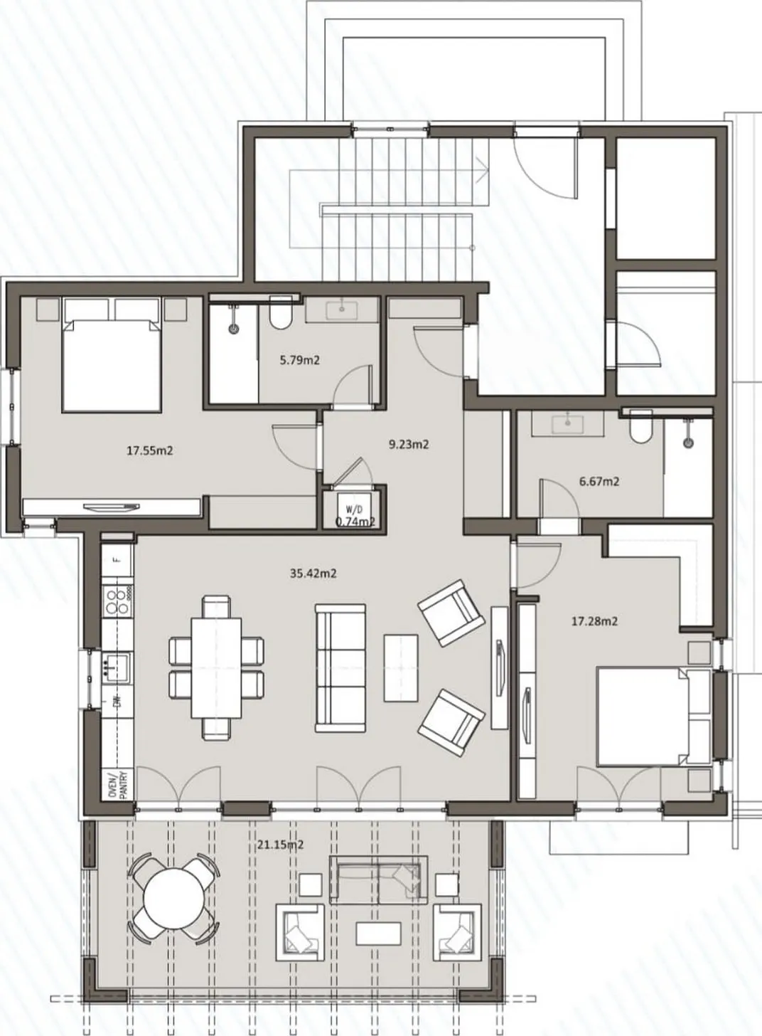The interior is bright, airy, and elegantly furnished with premium materials. The seamless layout and refined color palette create a peaceful and comfortable coastal living environment. Views of the sea and marina can be enjoyed from the living area, master bedroom, and the expansive terrace.