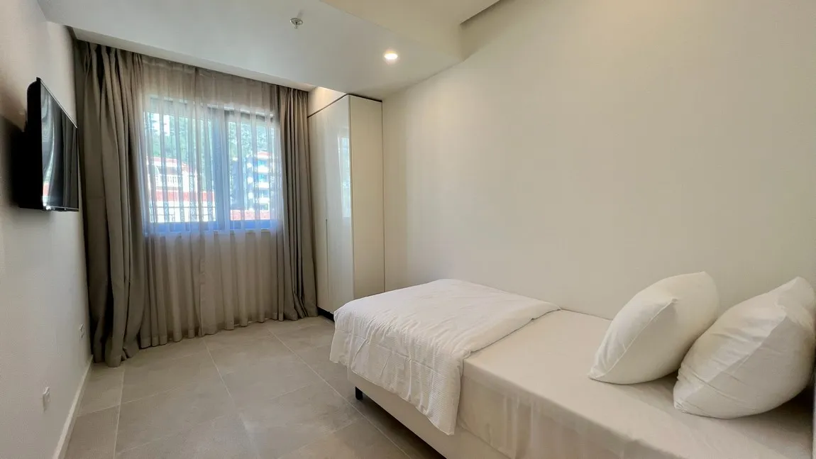 L'appartement fait partie d'une résidence de bord de mer bien entretenue, offrant des prestations telles qu'une piscine avec espace détente, une aire de jeux pour enfants, un espace fitness extérieur, des restaurants, un café et un bar.Les résidents bénéficient d'une sécurité 24h/24, d'un service de réception et d'un parking souterrain.