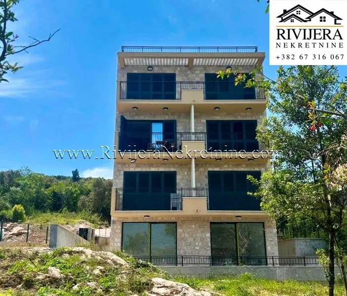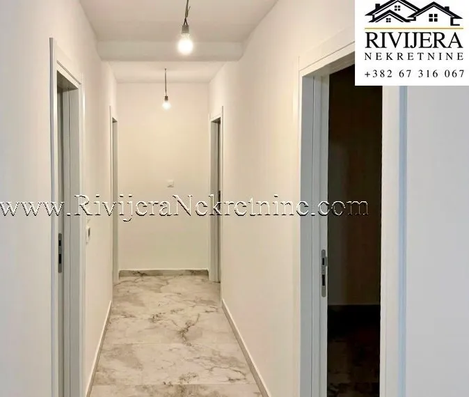 Un appartement moderne de trois chambres, d'une superficie totale de 104 m², est à vendre dans un immeuble résidentiel neuf du quartier prisé d'Obala Đuraševića, dans la commune de Tivat, à seulement 100 mètres de la mer.