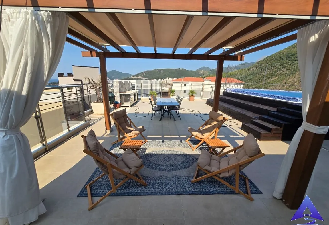 Situated on the top floor of a modern building in the sought-after seaside town of Rafailovići, this exceptional 149m² penthouse offers the ultimate in coastal living.